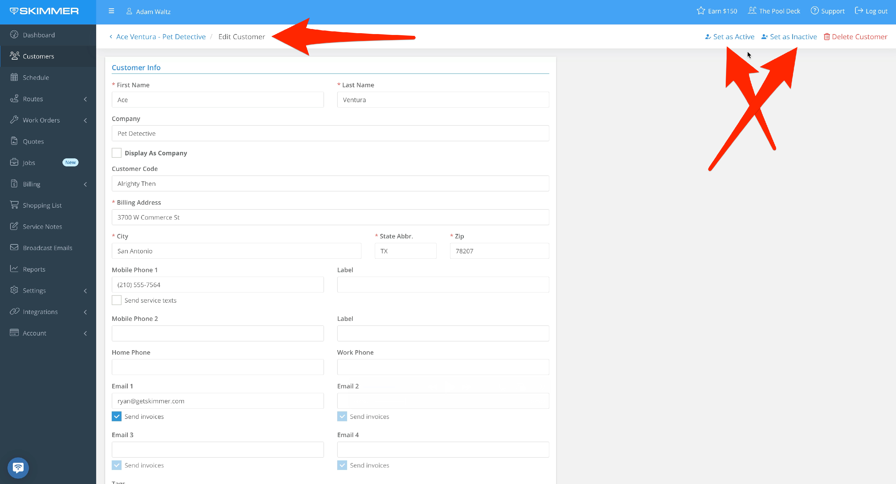 - You can change the name of the body of water once the information is saved in their customer profile. Select the body of water at the top of their profile and click Edit.