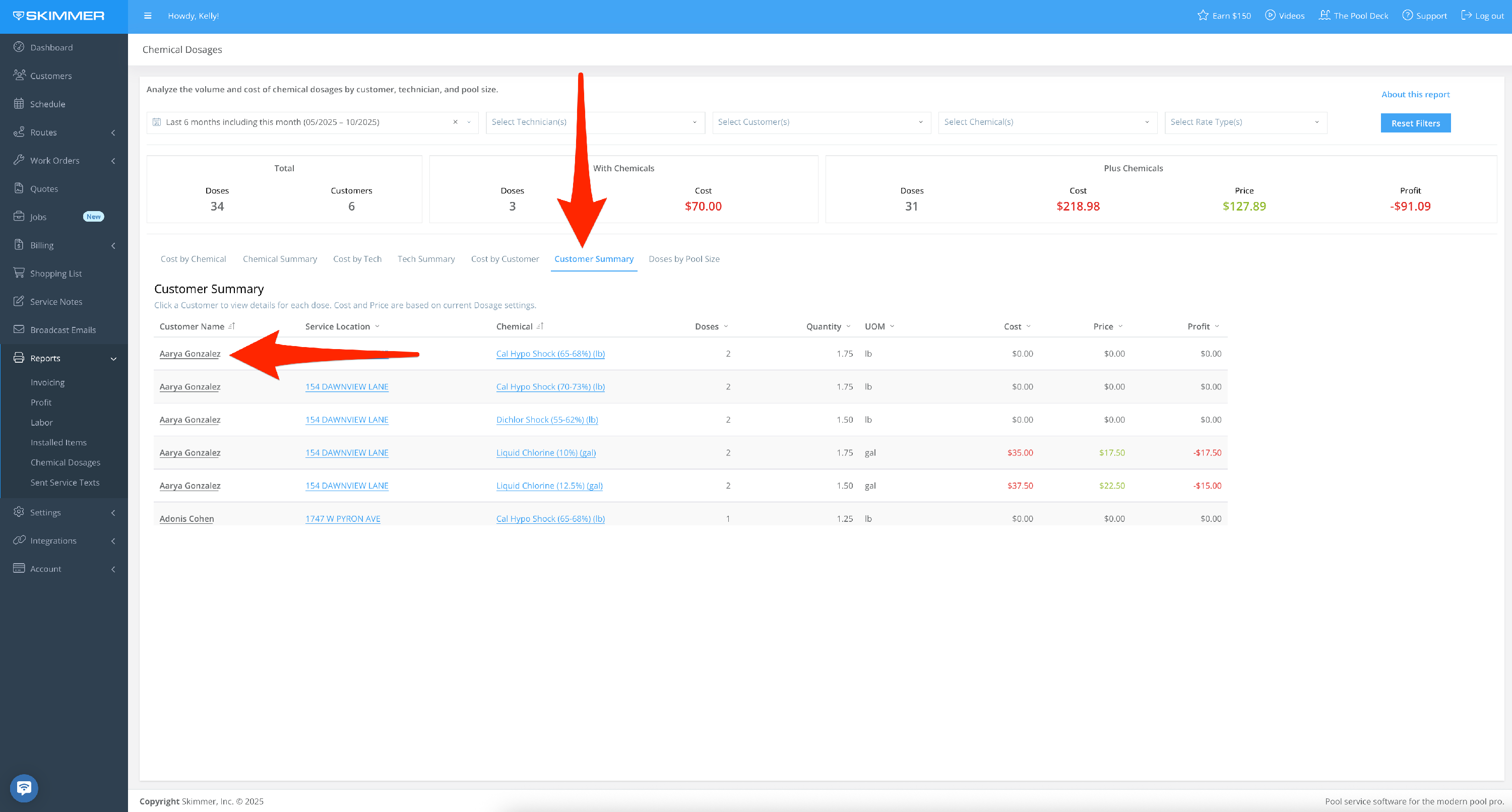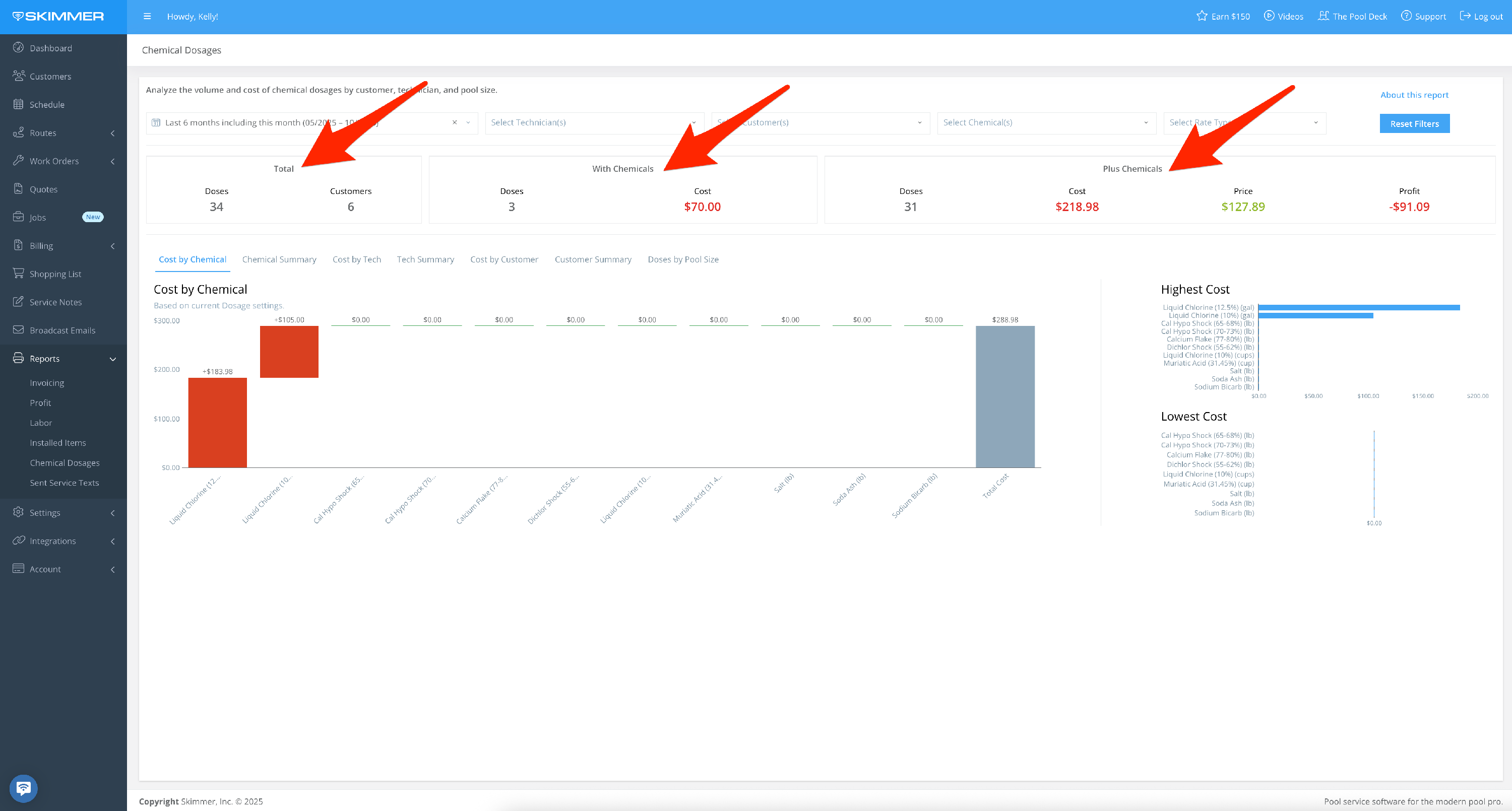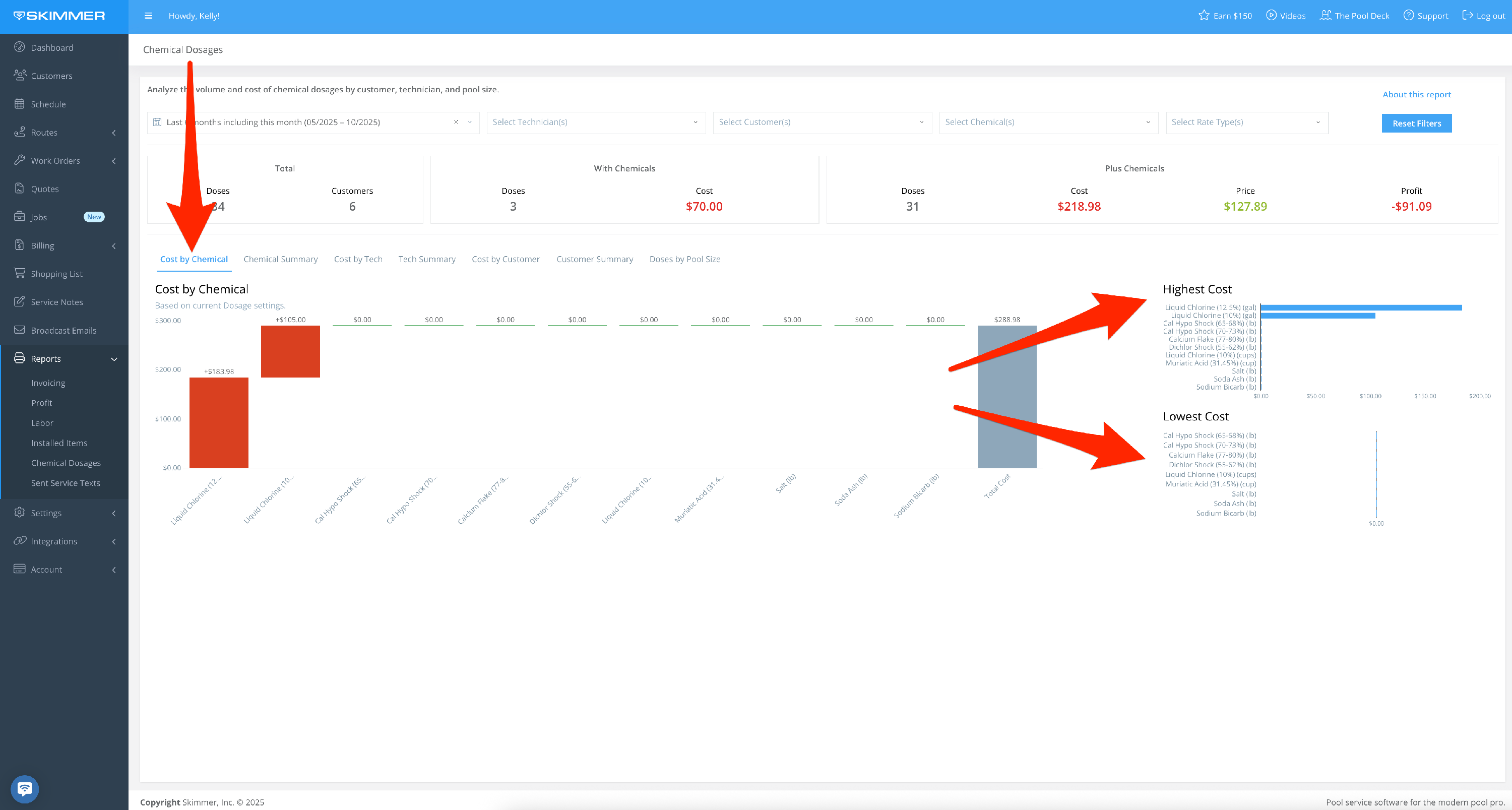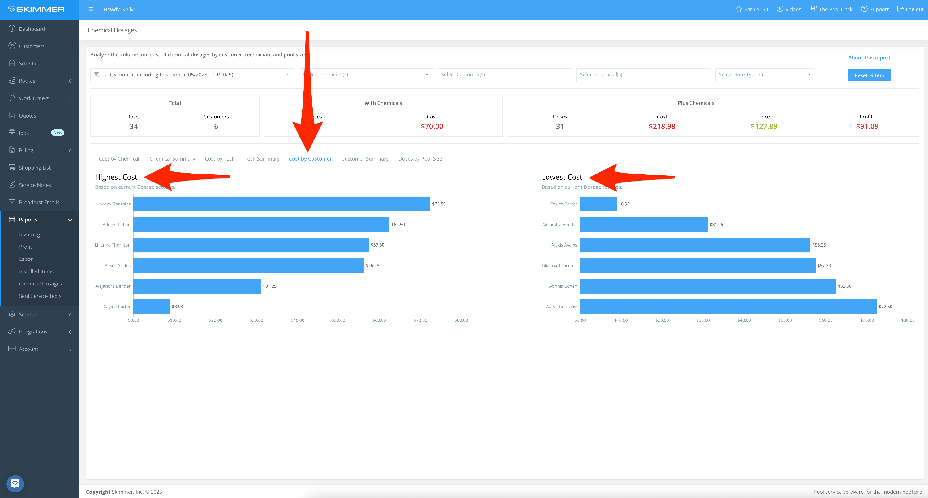 - Cost by Customer is a great way to see a quick summary of which customers are receiving the most chemicals in their pool. It’s a snapshot of highest-use and lowest-use customers.