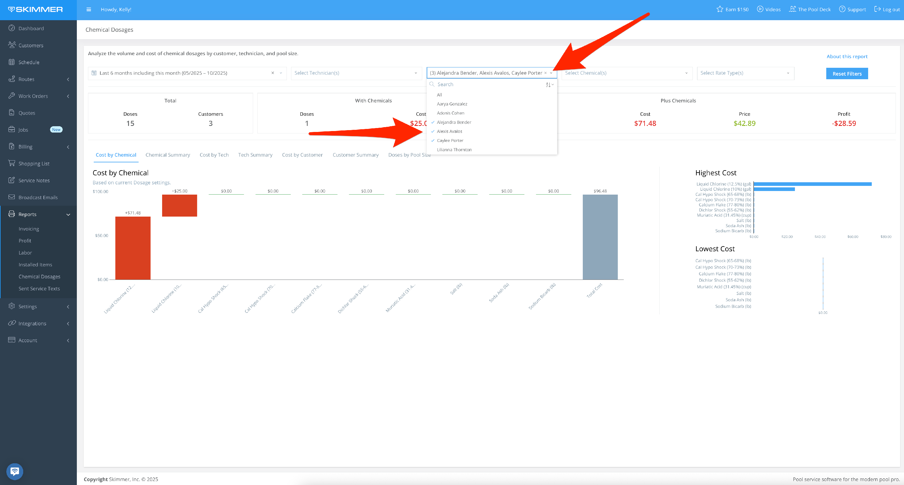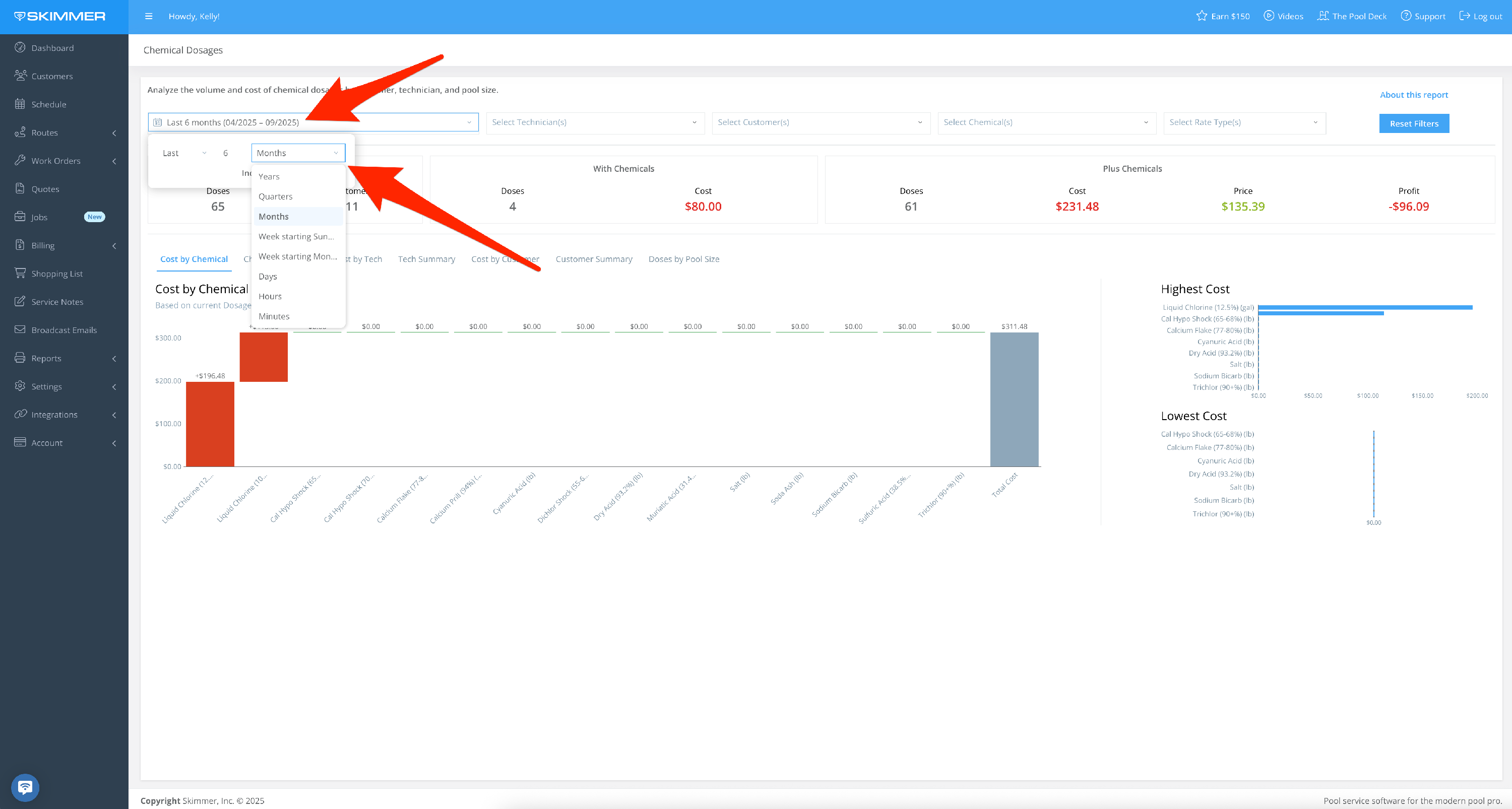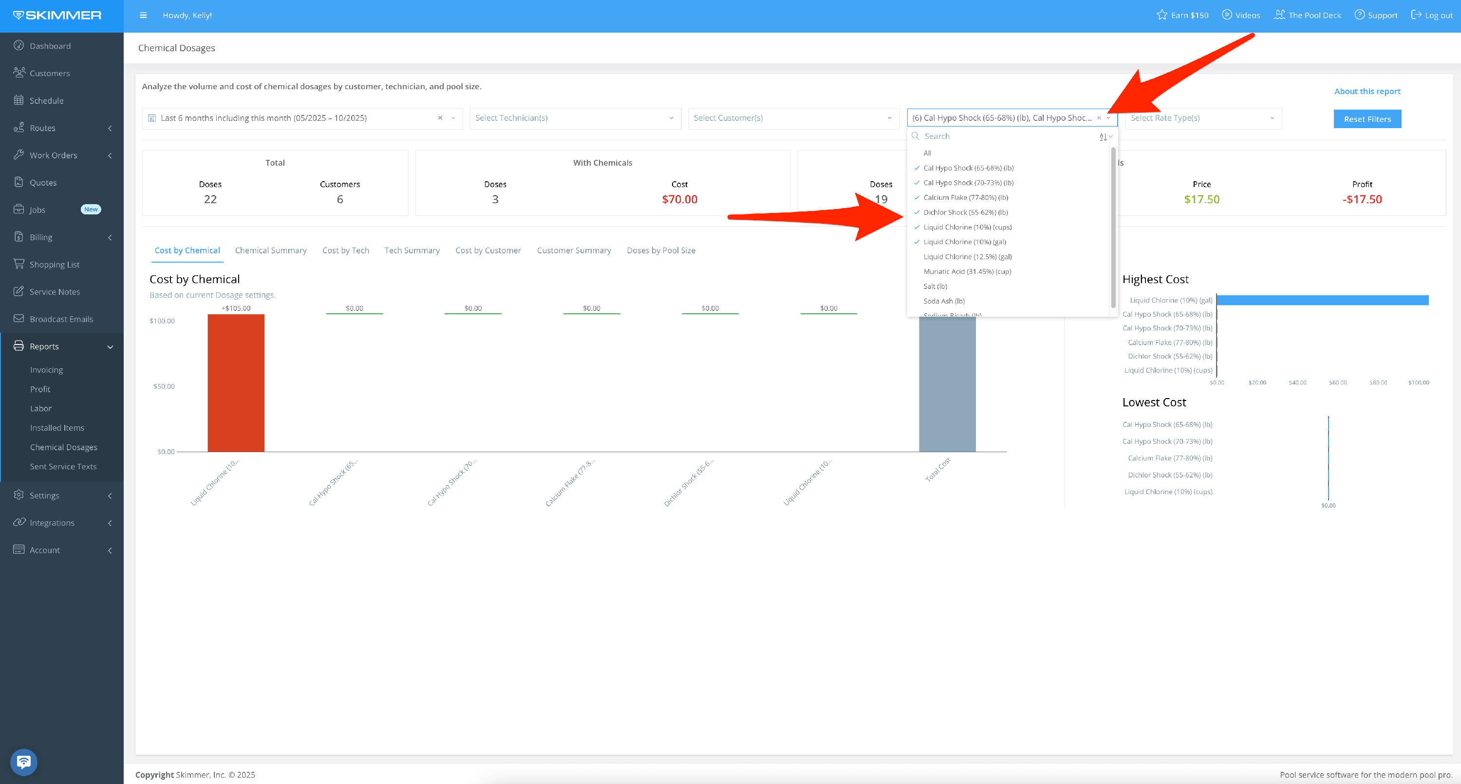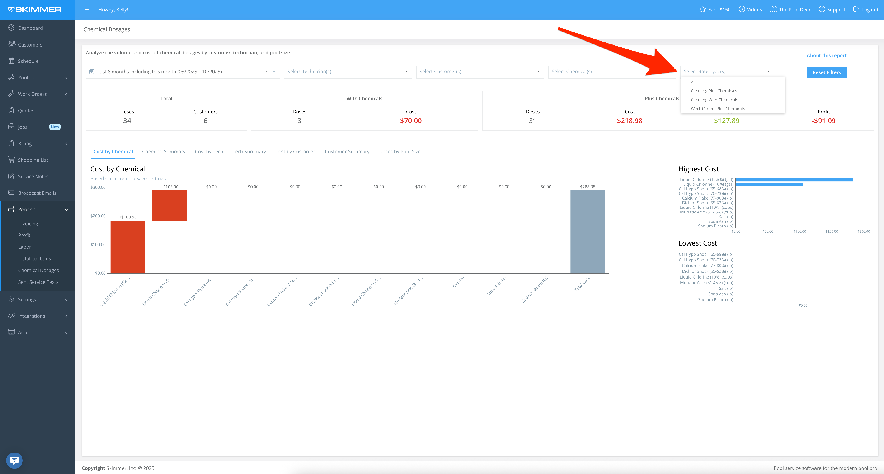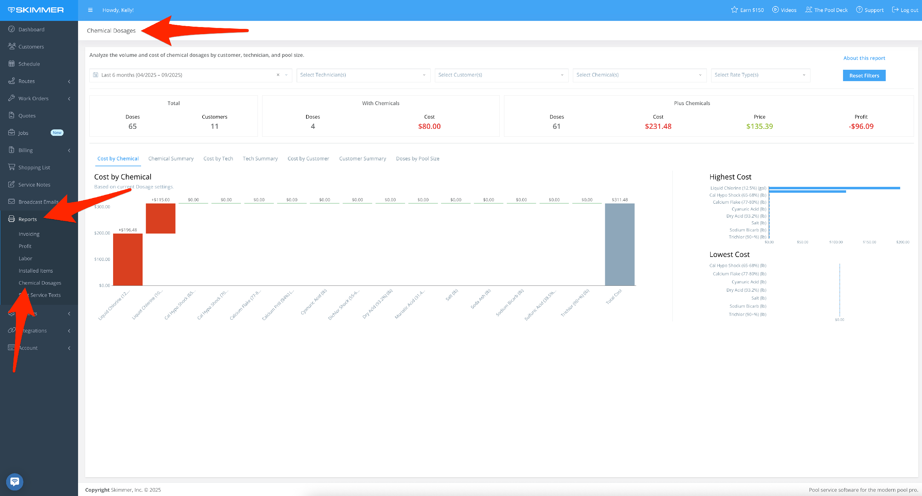 - Cost by Customer is a great way to see a quick summary of which customers are receiving the most chemicals in their pool. It’s a snapshot of highest-use and lowest-use customers.