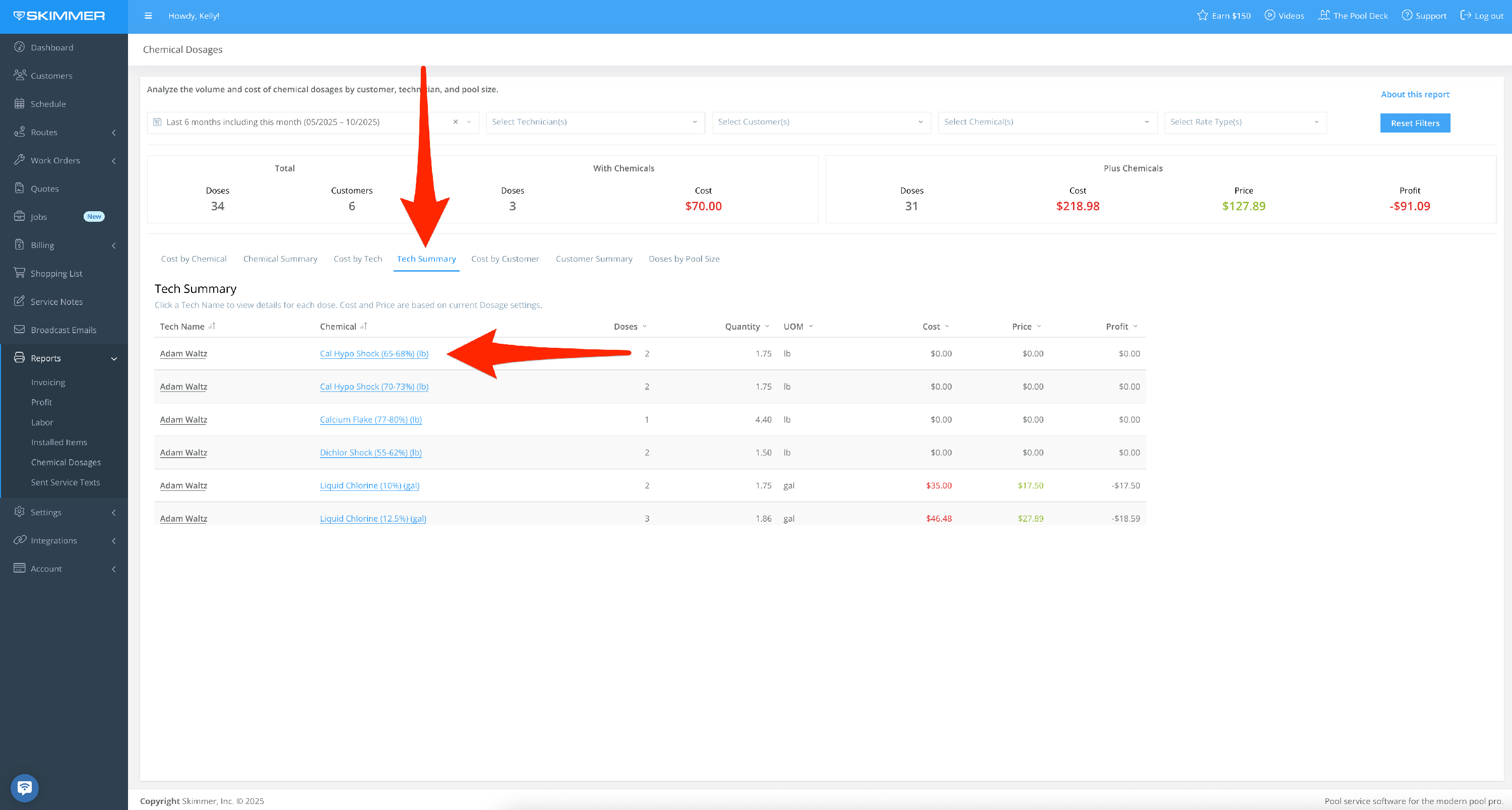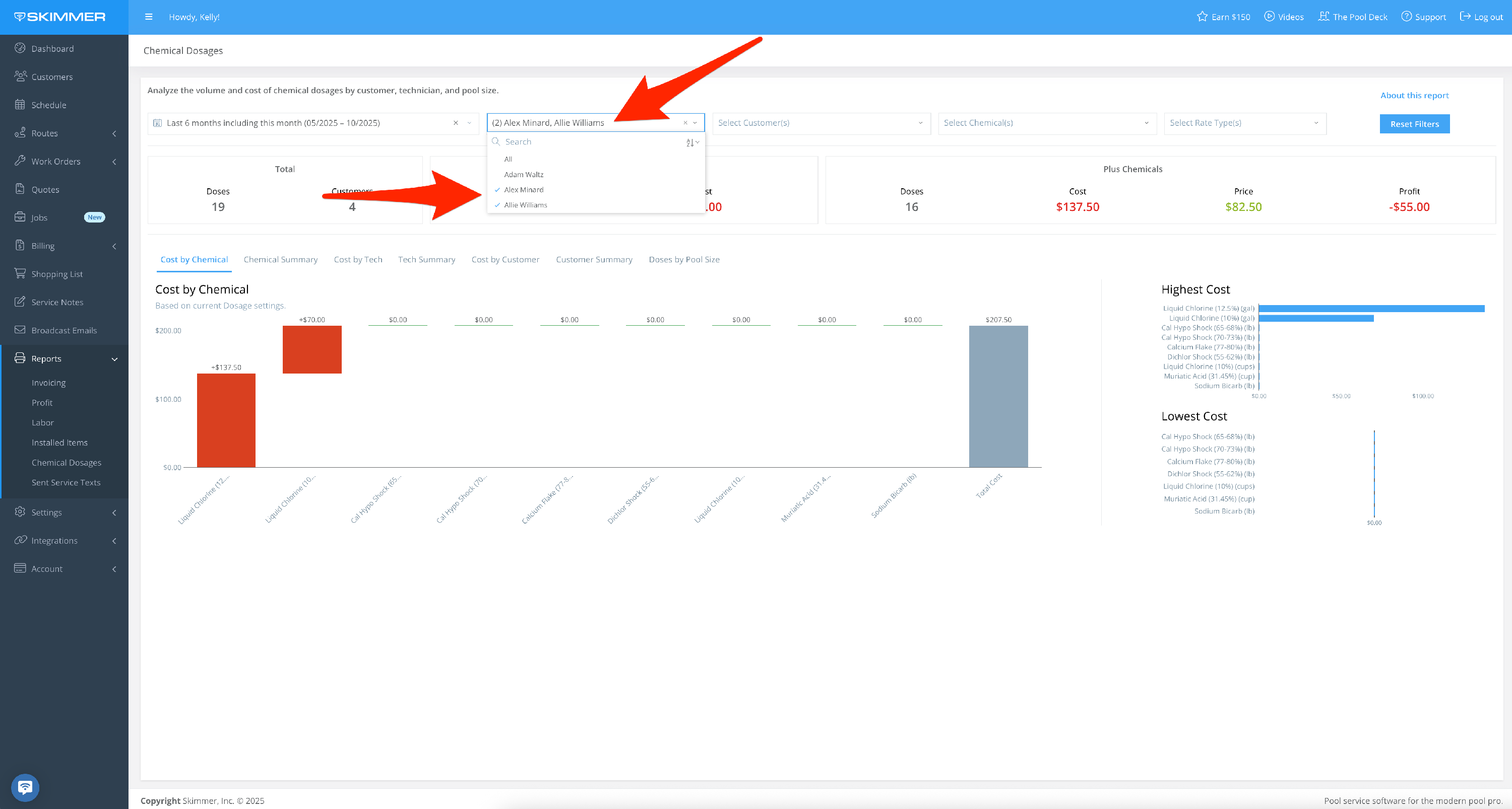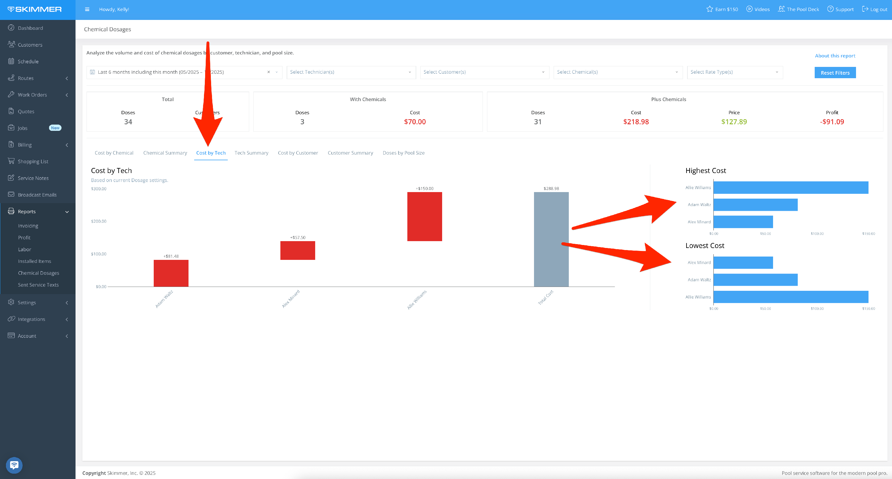 - Cost by Tech gives you the same data as Cost by Chemical, organized by the tech who did the work.