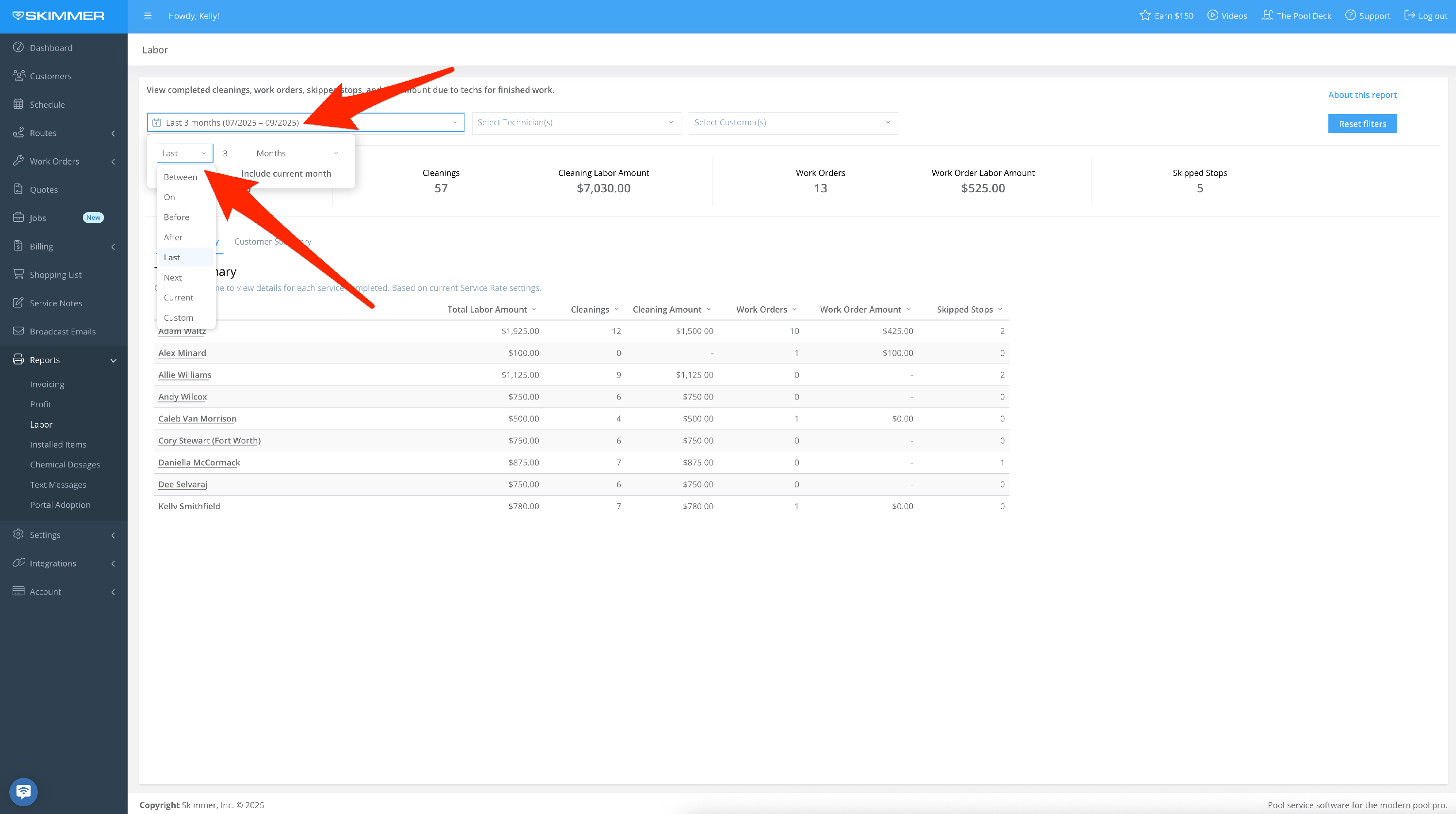 - When you filter by customer, the only customer names that show up in the dropdown are the ones who have received service within the selected time frame