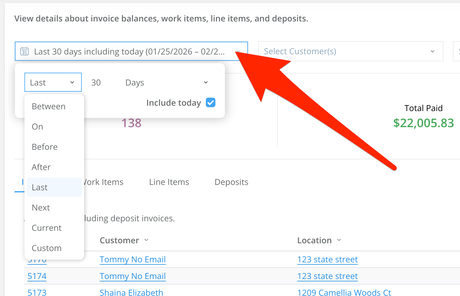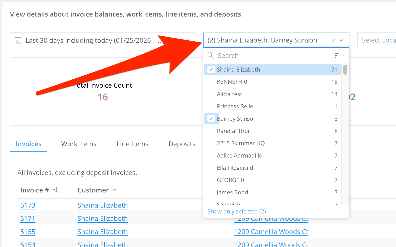 - When you filter by customer, the only customer names that show up in the dropdown are the ones who have received service within the selected time frame