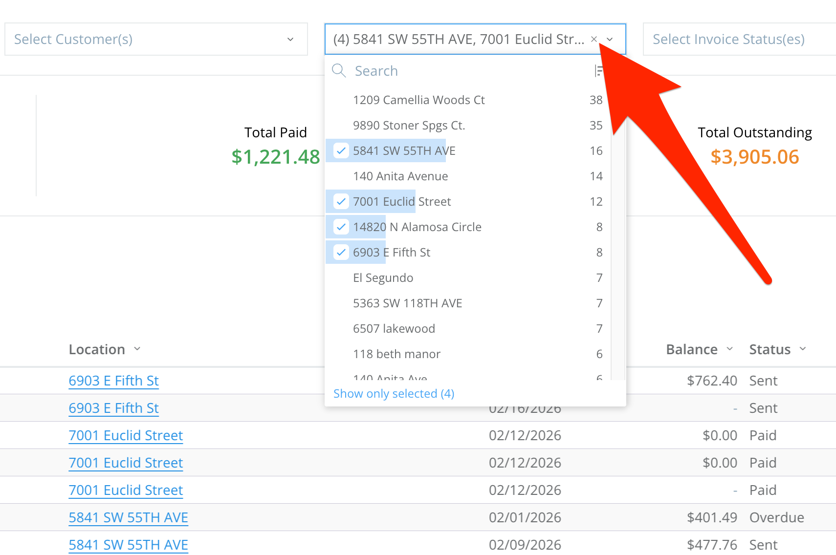 Filter by Invoice Status: