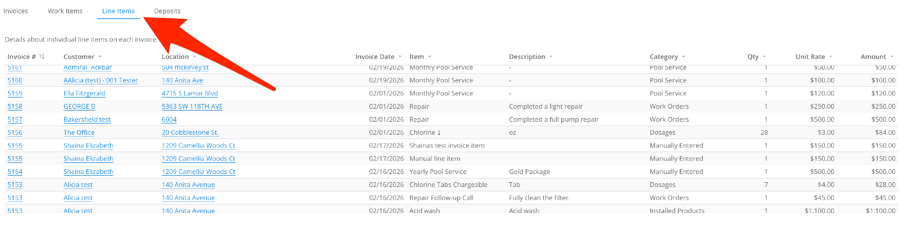 - Line Items gives greater detail for each invoice, down to individual line items.