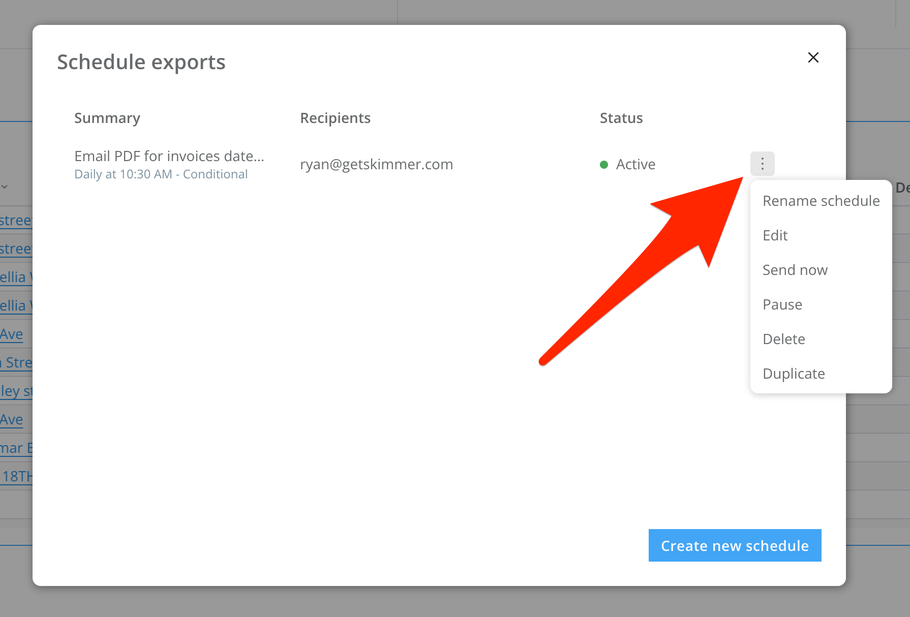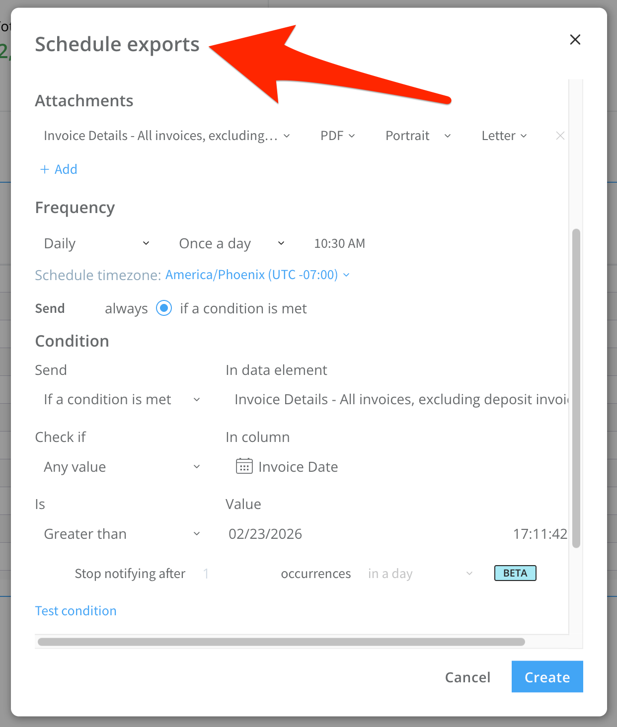 The “Alert When” option sets up an automatic export if the conditions you set are met. For instance, you can choose for the export to trigger if your cost exceeds a certain amount. The system does the monitoring of this condition for you and then triggers the export automatically. You can also select what supporting data you want to be included in the export, from a high-level summation to the whole text messages table. Once you create a scheduled export, you’ll have access to a table from which you can manage all of your scheduled exports, allowing you to edit/delete/duplicate/pause/manually send report at any time.