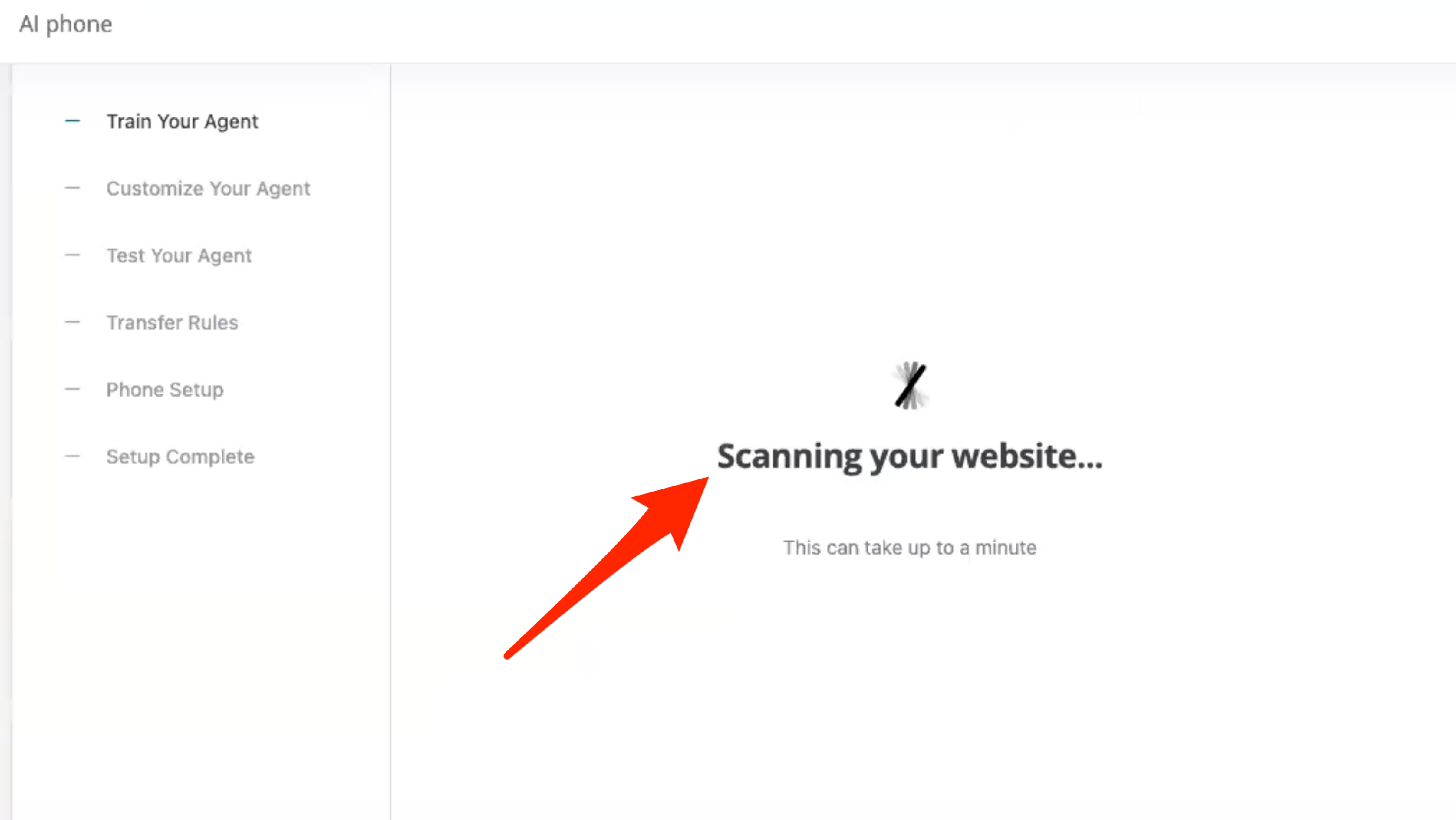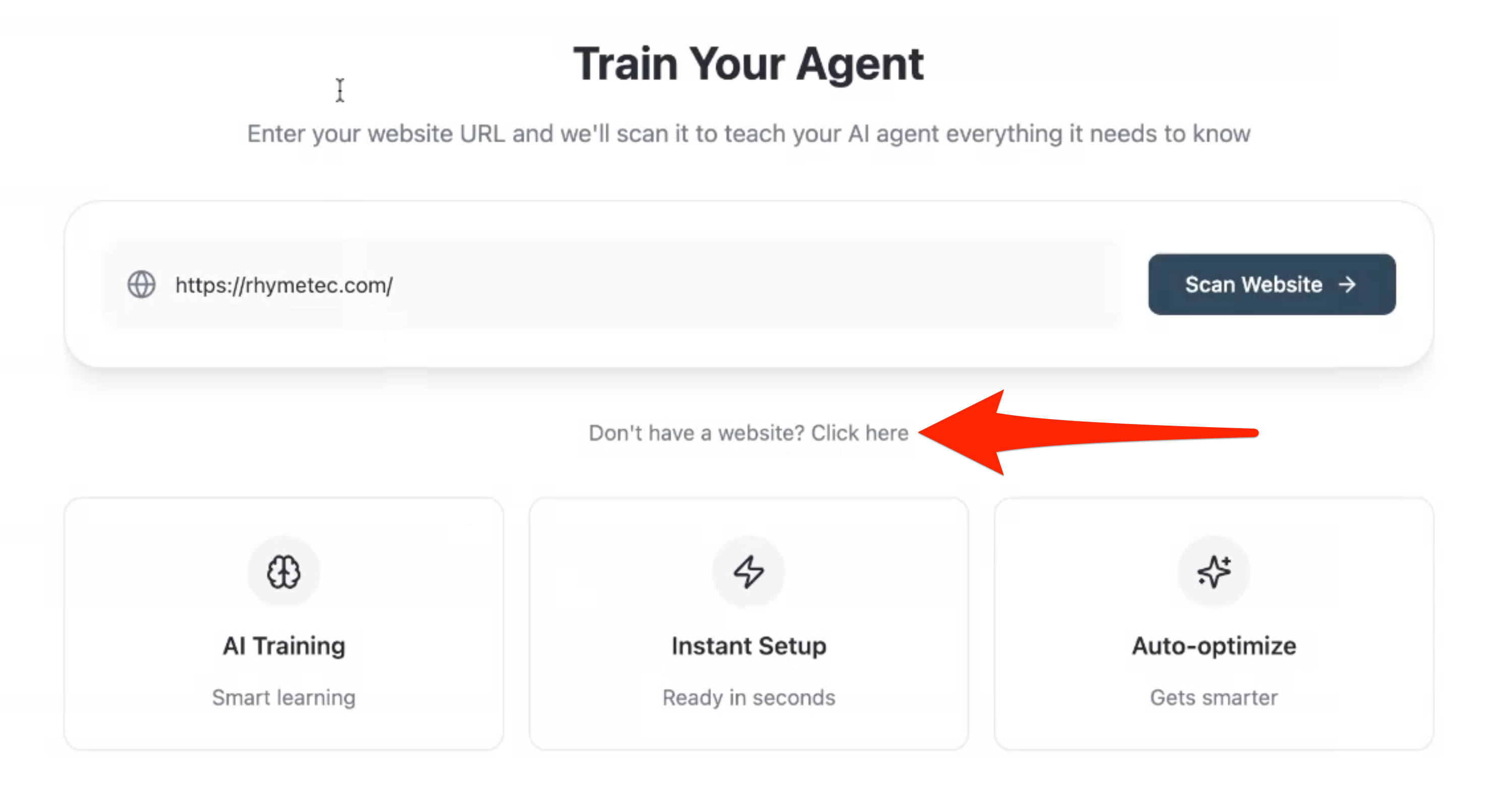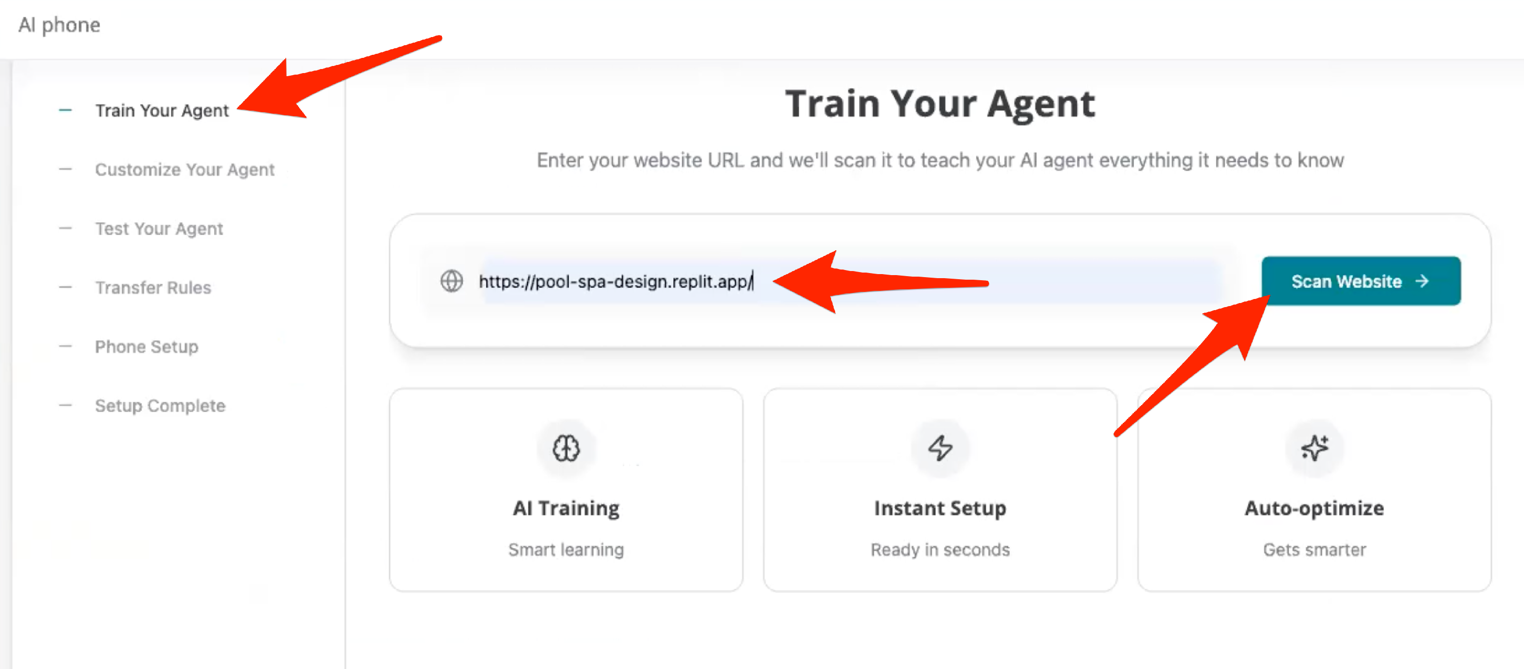 On the Train Your Agent page, enter your company website and then click Scan Website.